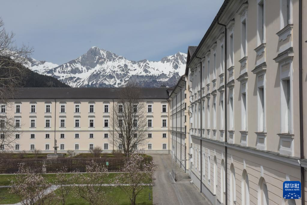 这是4月13日拍摄的奥地利阿德蒙特修道院图书馆外景。