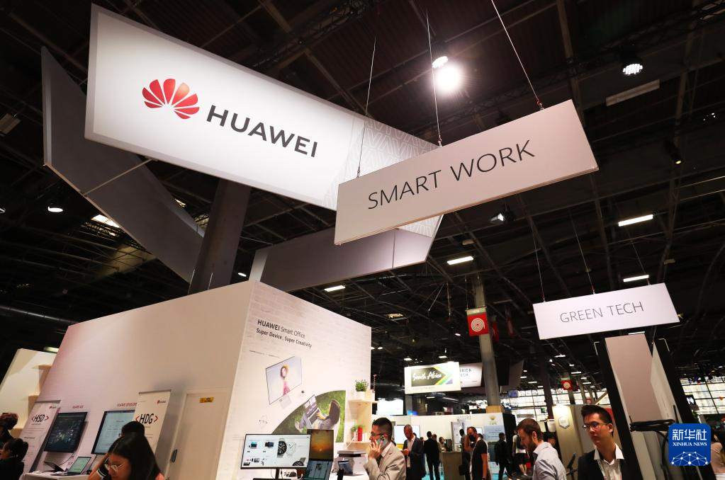 6月15日,在法国巴黎凡尔赛门展览中心举行的VivaTech科技创新展览会上,人们在华为展台参观。
