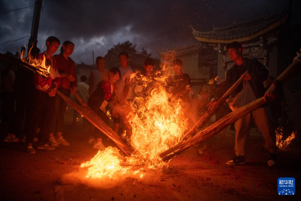 7月23日晚,云南省南涧彝族自治县太平村村民在欢度火把节。