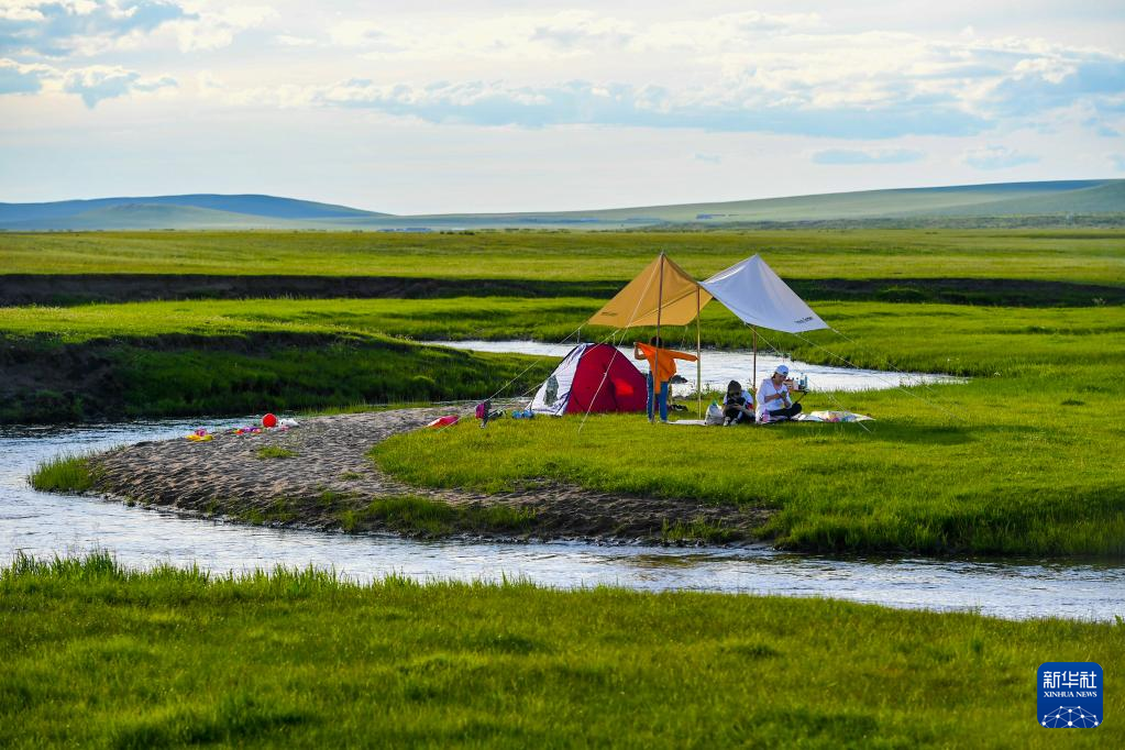 7月19日,游客在西乌珠穆沁旗巴拉嘎尔河畔露营。
