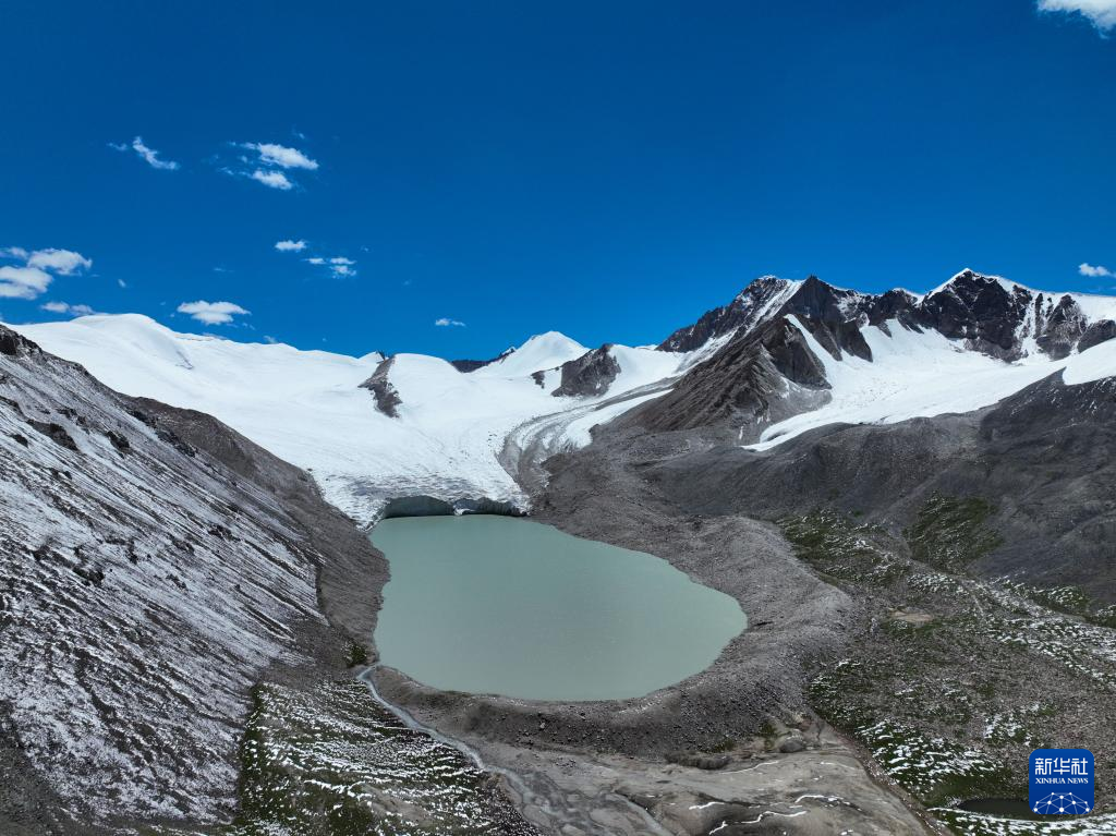 这是7月21日在长江源地区拍摄的冰川与湖泊(无人机照片)。