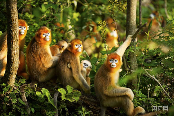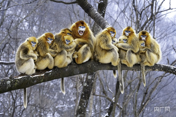 金丝猴抱团取暖(央广网发 丁宽亮 摄)