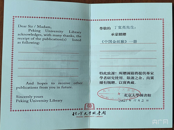 “我作为一名生态保护参与者,见证者,通过自己艰苦努力奋斗与实践,用镜头捕捉到大量自然环境下金丝猴珍贵影像。这些珍贵影像资料对于自然生态生物研究院所、高等教育机构学者、科研人员进行学术研究具有重要参考价值,尤其捐赠著名高校图书馆珍藏具有十分重要文献价值。”丁宽亮说。