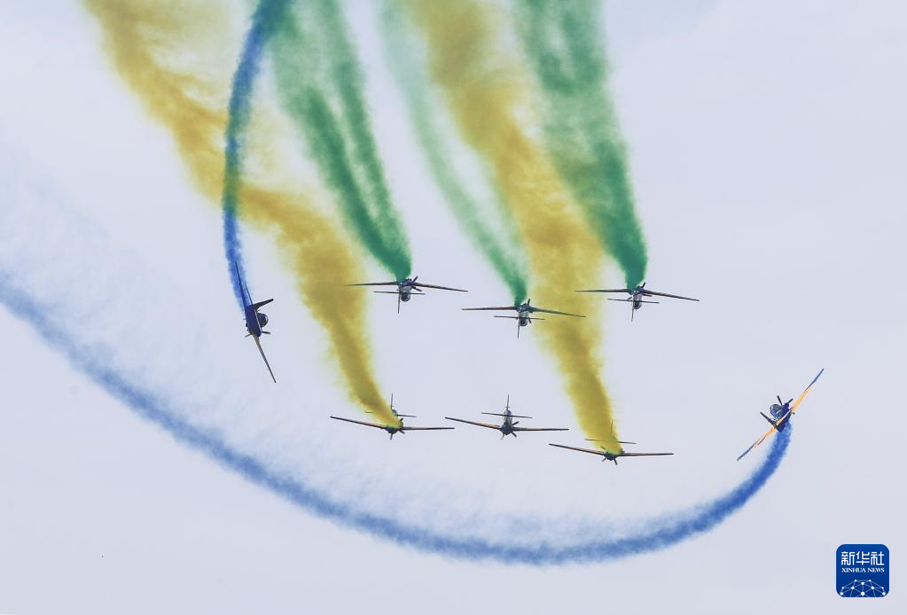 9月7日,飞机在巴西里约热内卢科帕卡巴纳海滩上空进行飞行表演,庆祝巴西独立200周年。