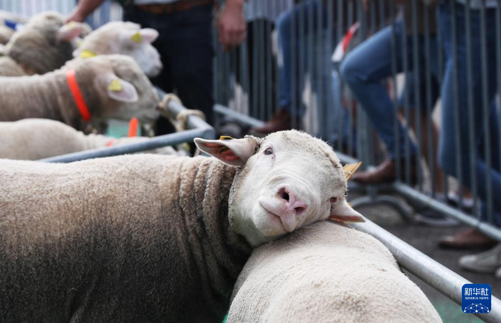 这是9月13日在法国雷恩畜牧业展览会上拍摄的展出的绵羊。