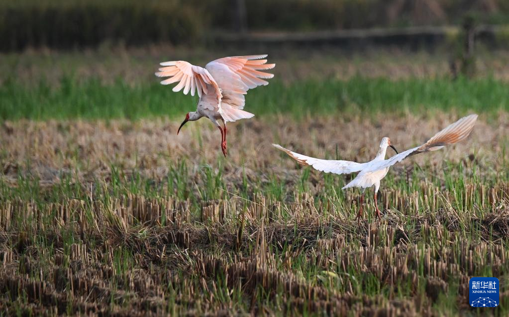 陕西省汉中市洋县位于秦岭南麓、汉中盆地东缘,是世界闻名的“朱鹮之乡”。目前当地生活的朱鹮有7000多只,秋收时节,朱鹮在田间飞舞嬉戏,构成一幅自然和谐的田园美景。