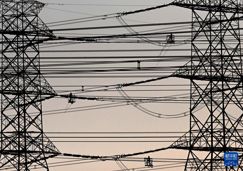 9月19日,工人在科威特杰赫拉省的高空电缆上进行维护作业。