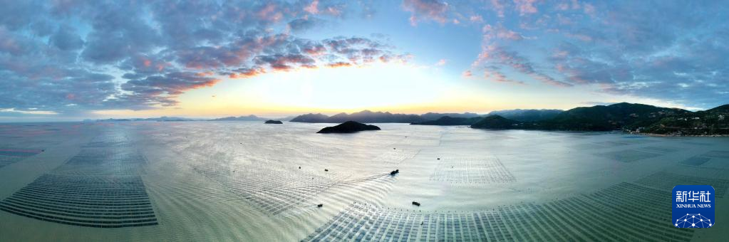 渔船行驶在福建省霞浦县三沙镇紫菜养殖区(10月20日摄,无人机照片)。