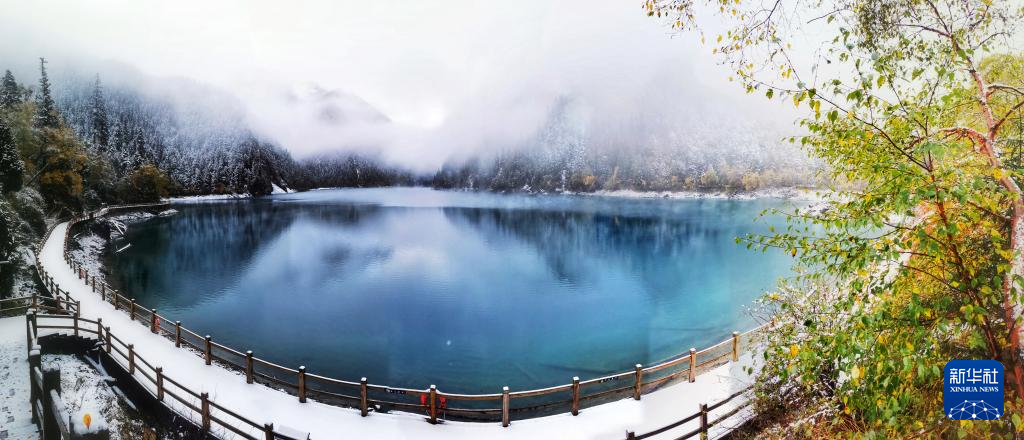 进入十月,世界自然遗产地九寨沟迎来一年中最多彩的季节。国庆假期最后一天,九寨沟景区内多处景点降下今秋第一场雪,美丽景色宛若童话世界。