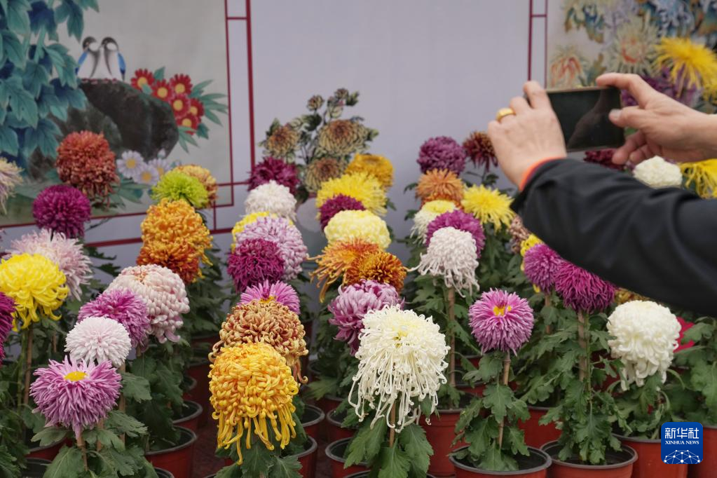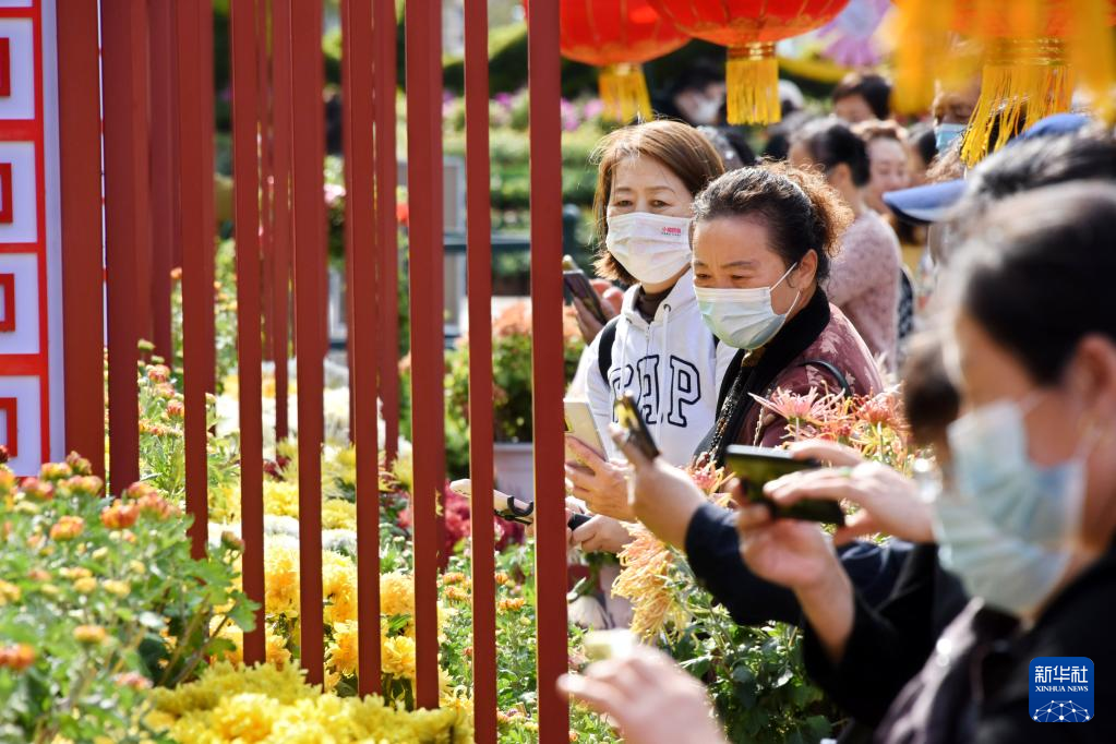 10月25日,游客在菊花展上赏花、拍摄。
