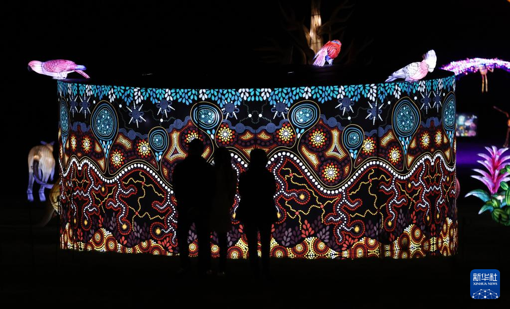 10月26日,参观者在法国图瓦里动物园灯展媒体预展上观看彩灯。