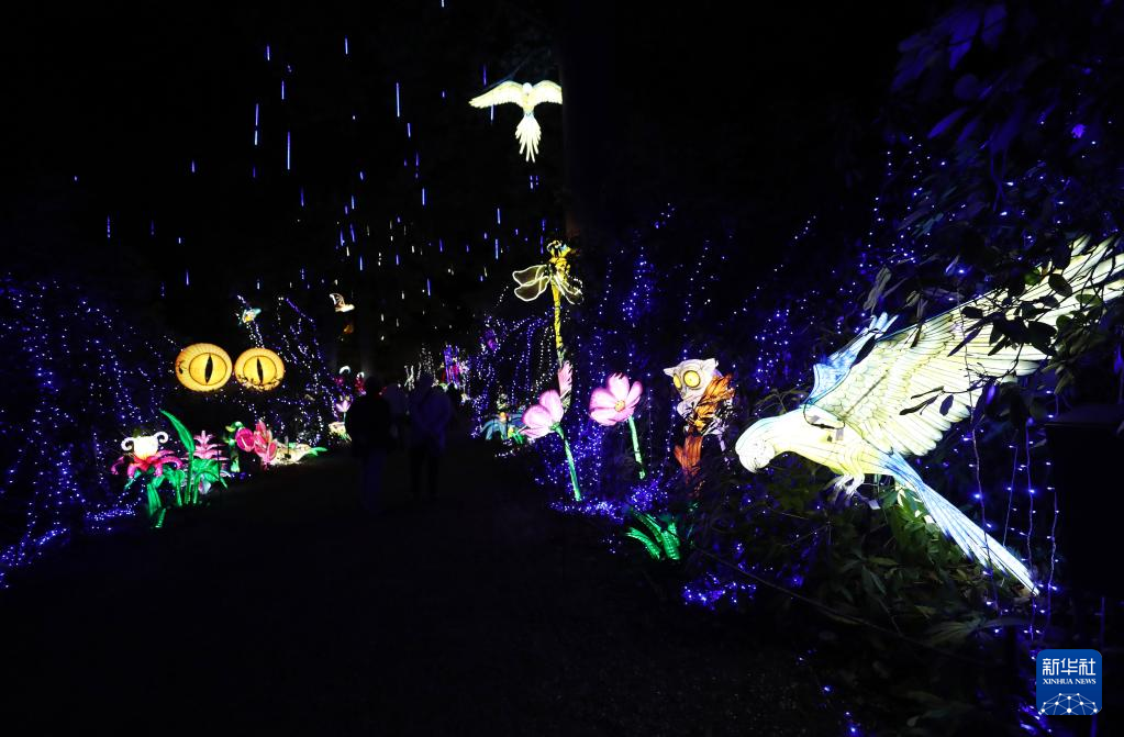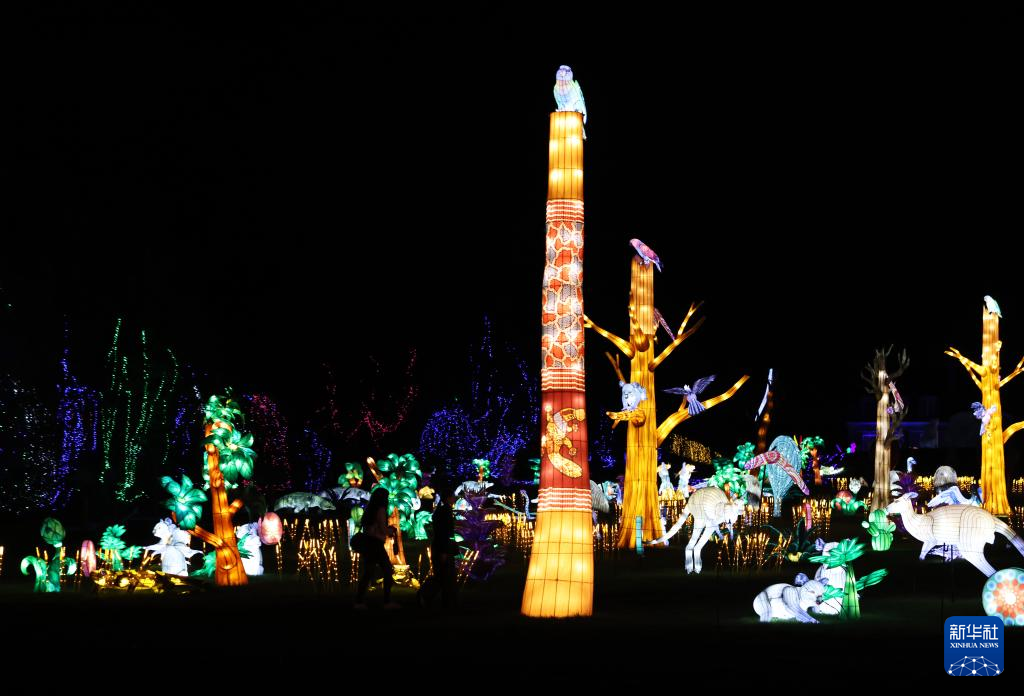 10月26日在法国图瓦里动物园灯展媒体预展上拍摄的彩灯。