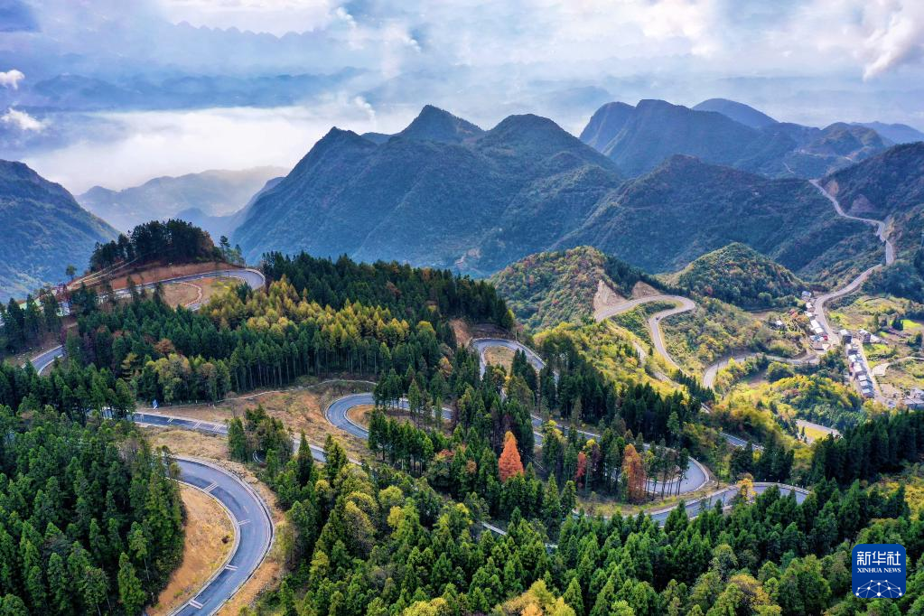 这是10月31日在湖北省恩施土家族苗族自治州建始县业州镇拍摄的秋景(无人机照片)。