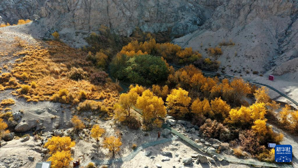 这是10月30日在甘肃省敦煌市悬泉置遗址悬泉谷内拍摄的秋景(无人机照片)。