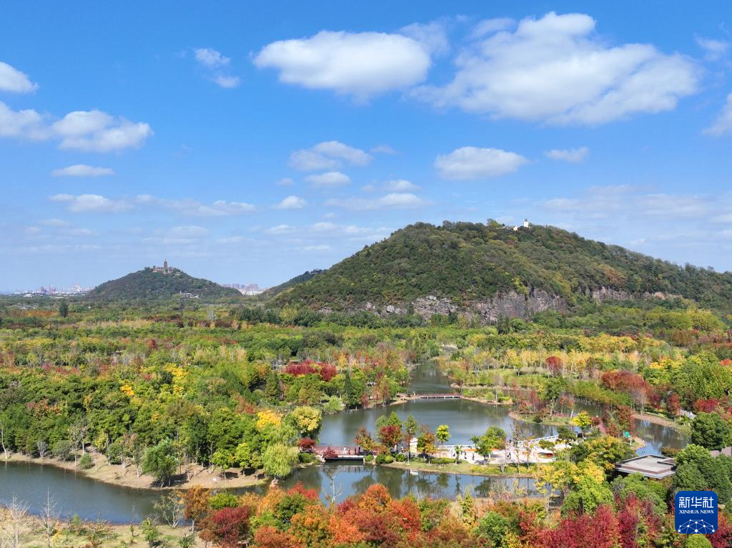 这是10月29日在江苏省南通狼山国家森林公园拍摄的秋景(无人机照片)。