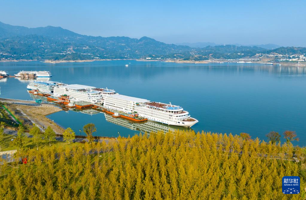 这是11月2日在湖北省宜昌市秭归县木鱼岛天问公园拍摄的秋景(无人机照片)。