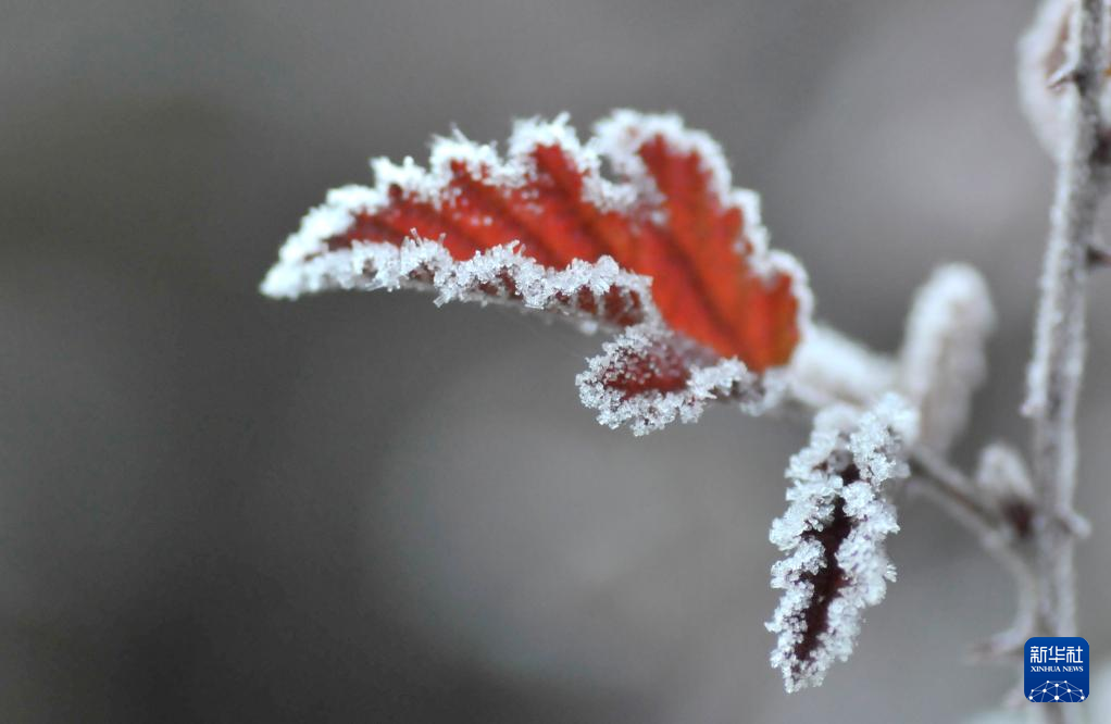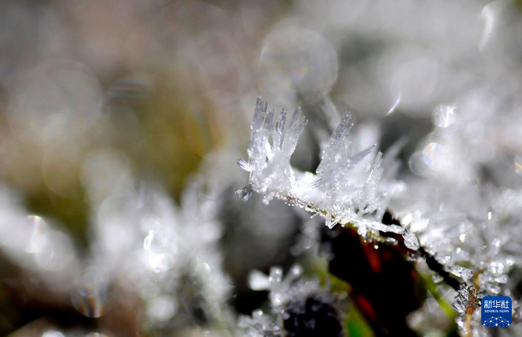 11月2日,在云南省迪庆藏族自治州香格里拉市建塘镇,植物叶子上结了一层霜。