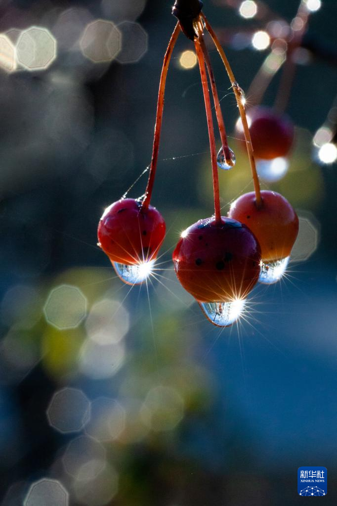 11月1日,在山东省淄博市高青县,成熟的果实挂着露珠。