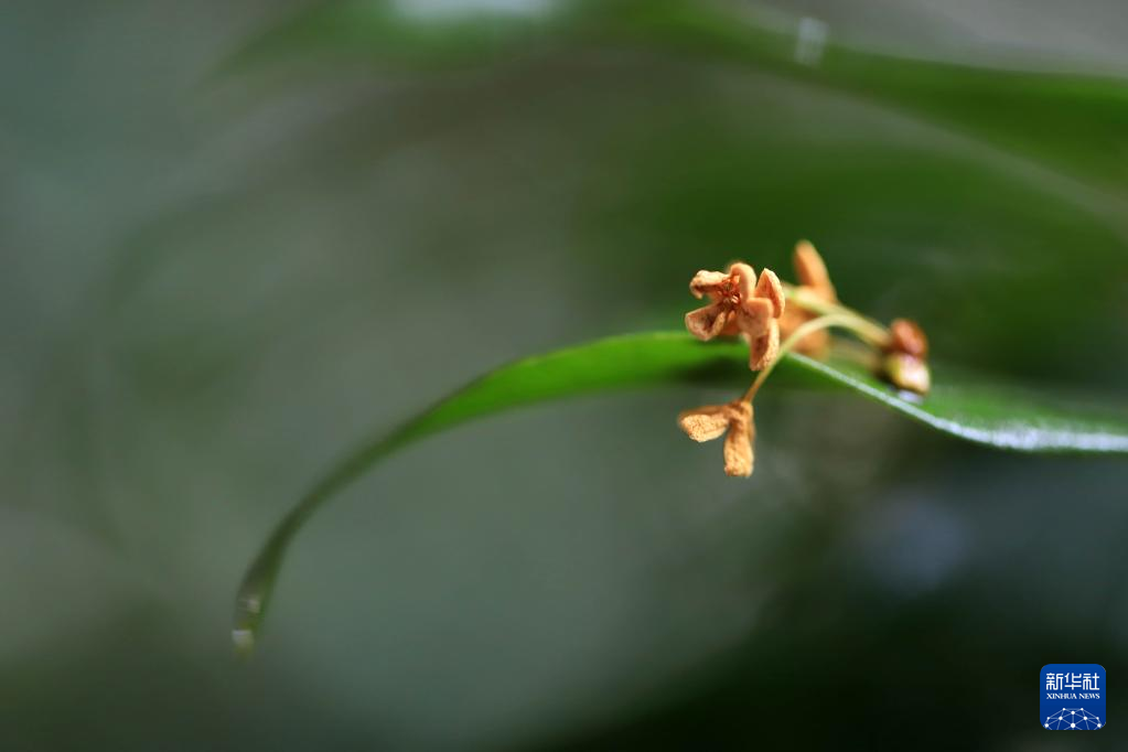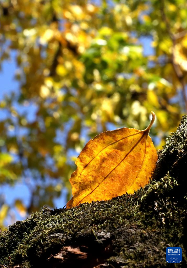 11月2日,在贵州省凯里市,花瓣落在树叶上。