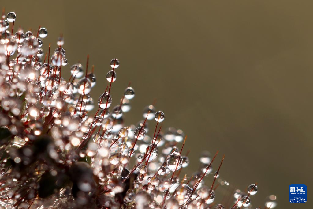 11月1日,在四川省武胜县沿口镇,狗尾草上挂满露珠。