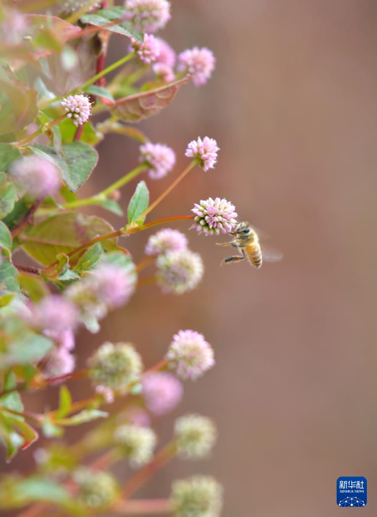 10月29日,在湖北省宣恩县,蜜蜂在花间飞舞。