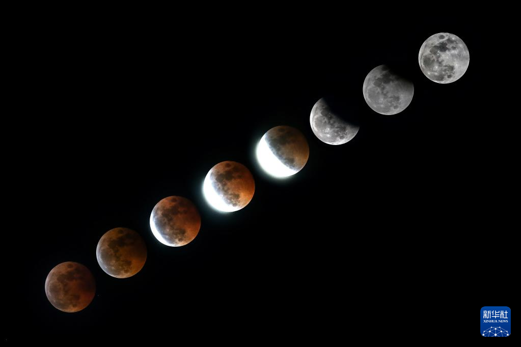 这是11月8日晚在菲律宾奎松城拍摄的月食景象(合成照片)。