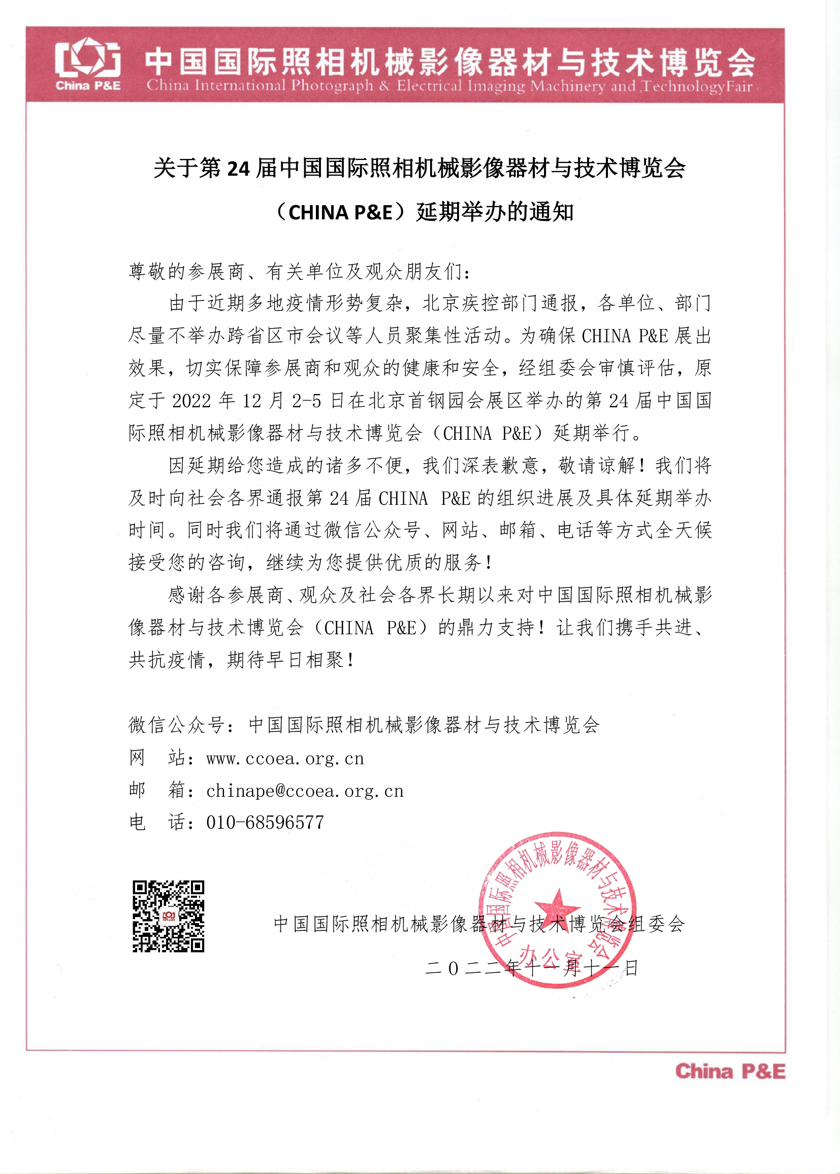 关于第24届 CHINA P&E 博览会延期举办的通知-新华网