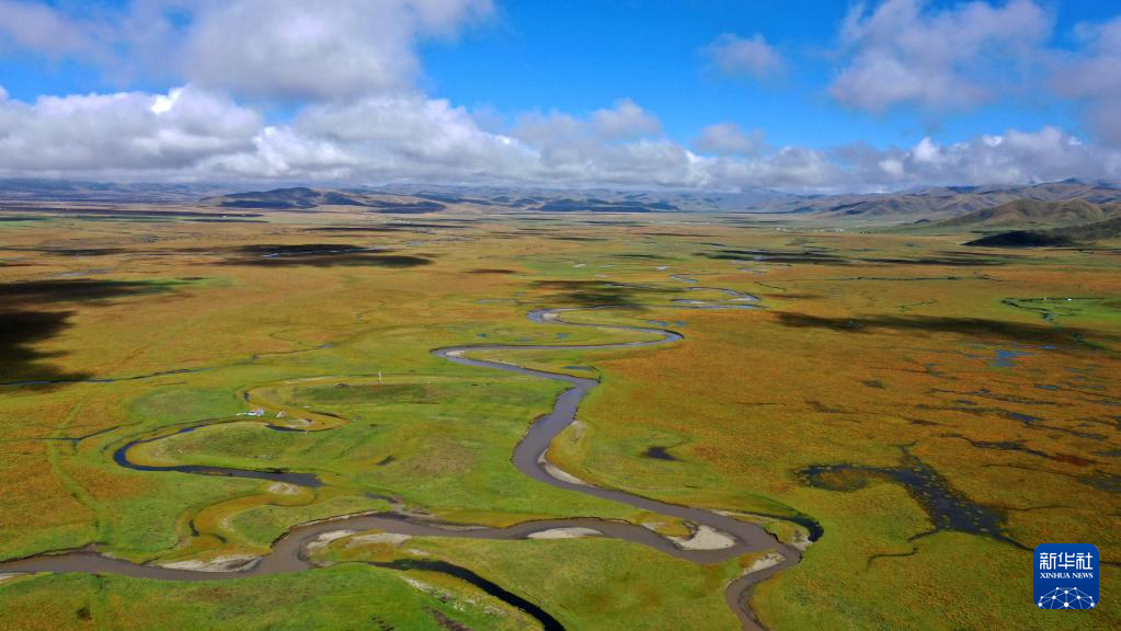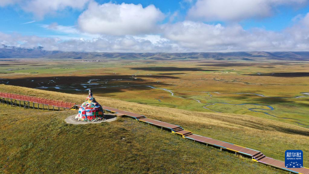 这是玛曲县阿万仓湿地秋景(2022年9月21日摄,无人机照片)。