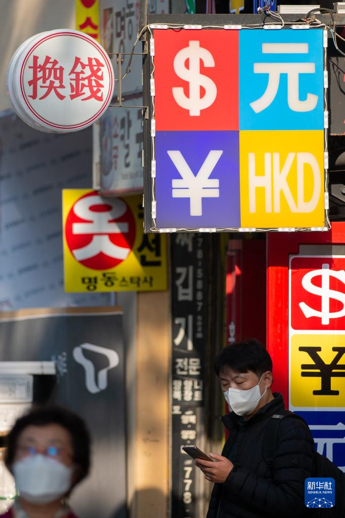 这是11月24日在韩国首尔明洞街区拍摄的换钱所。
