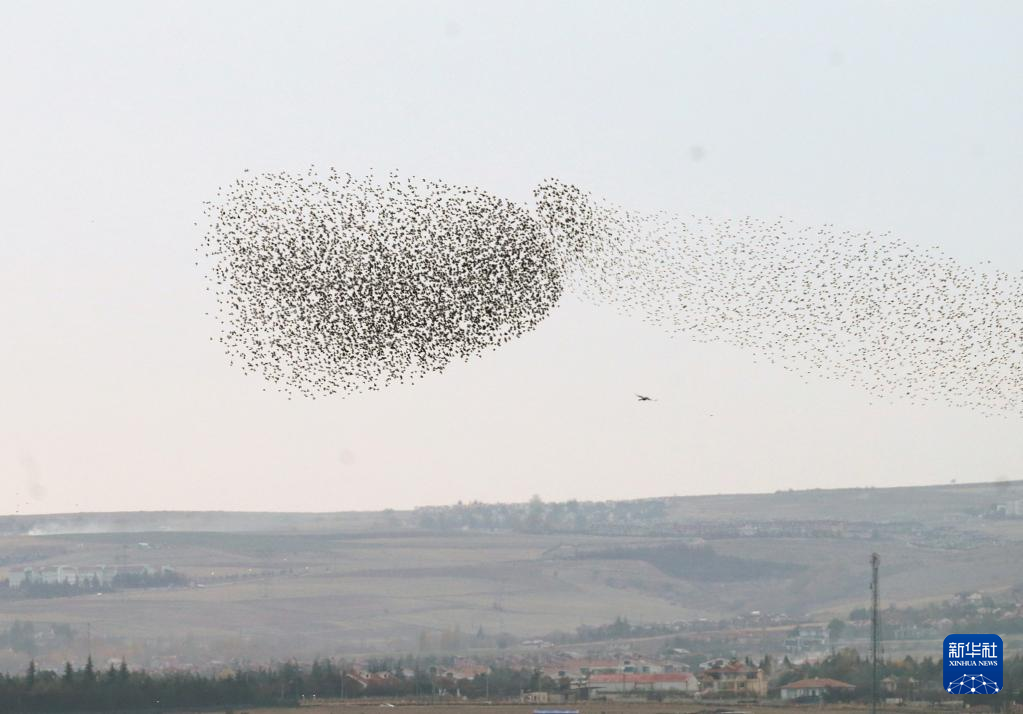 11月21日,一群椋鸟飞过土耳其安卡拉郊外的原野。