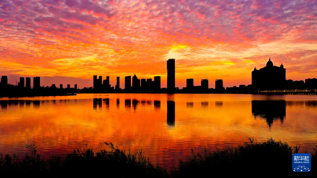 东营市悦来湖晚霞(2021年9月1日摄)。