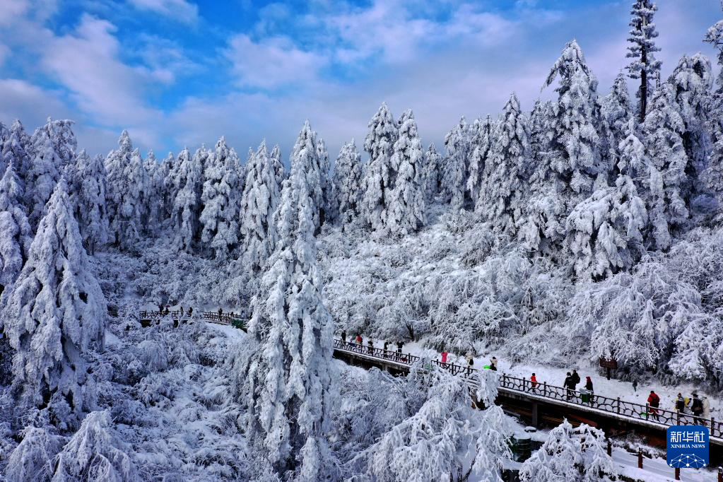 近日,位于四川省眉山市洪雅县的瓦屋山迎来多场降雪,皑皑白雪将瓦屋山装扮得银装素裹,宛如童话世界。