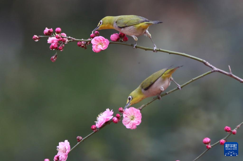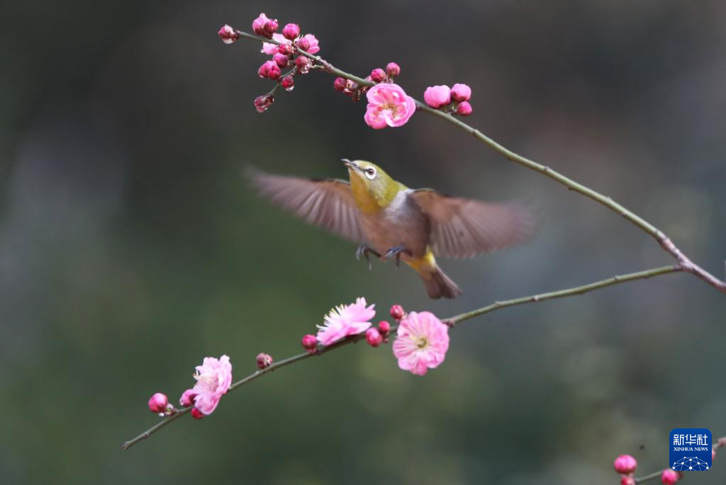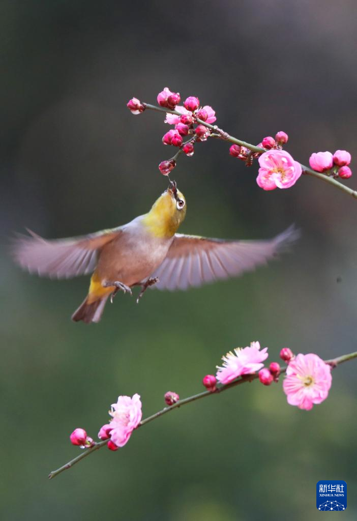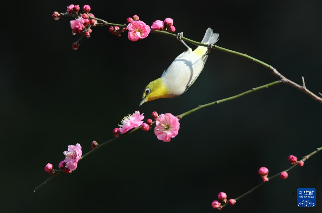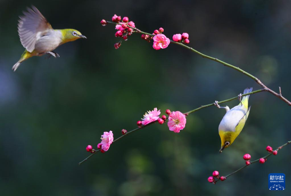 1月29日,在湖南省衡阳市雁峰区五星村,梅花悄然绽放,小鸟在枝头鸣唱,鸟语花香迎春来。