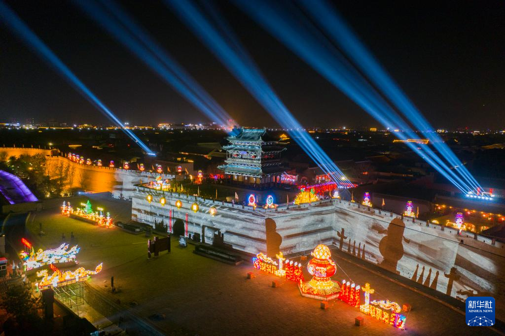 这是1月29日在山西省晋中市平遥古城拍摄的灯光秀(无人机照片)。
