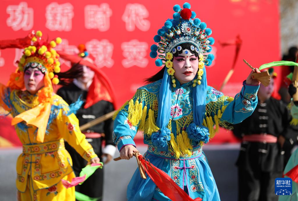 1月29日,在河北省沧县旧州镇贾村,民俗艺人在表演落子。