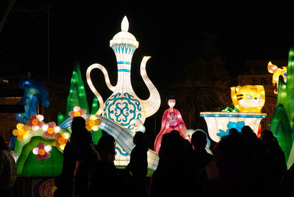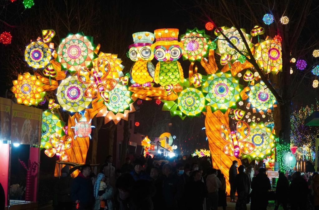 元宵佳节临近,在山东省淄博市张店区举办的玉黛湖花灯会上,50多组花灯灿烂多彩,吸引市民前来赏灯游览。山东省淄博市有着制作花灯、举办花灯会的悠久传统,淄博花灯会于2014年入选第四批国家级非物质文化遗产代表性项目名录。