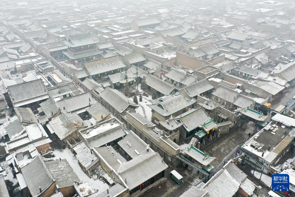 受冷暖空气共同影响,山西晋中平遥古城迎来降雪天气。初春的古城银装素裹,美景如画。