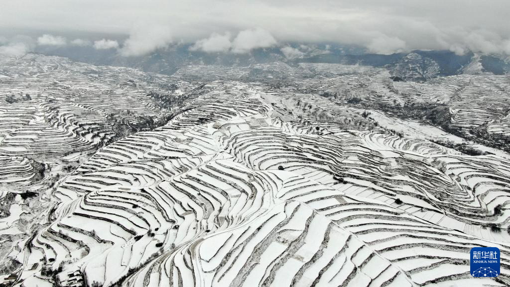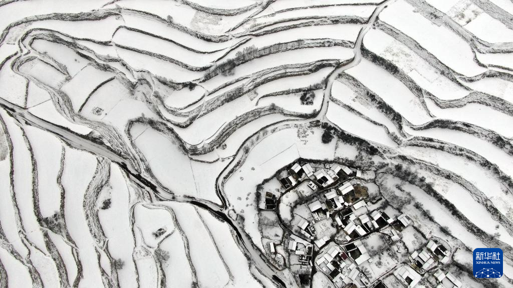 2月8日在陇南市宕昌县哈达铺镇拉路梁梯田拍摄的雪景。