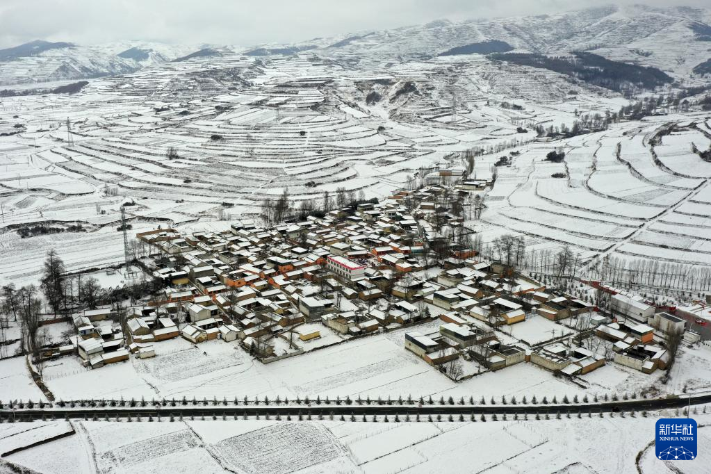 2月8日在甘肃省定西市岷县境内拍摄的春日雪景(无人机照片)。