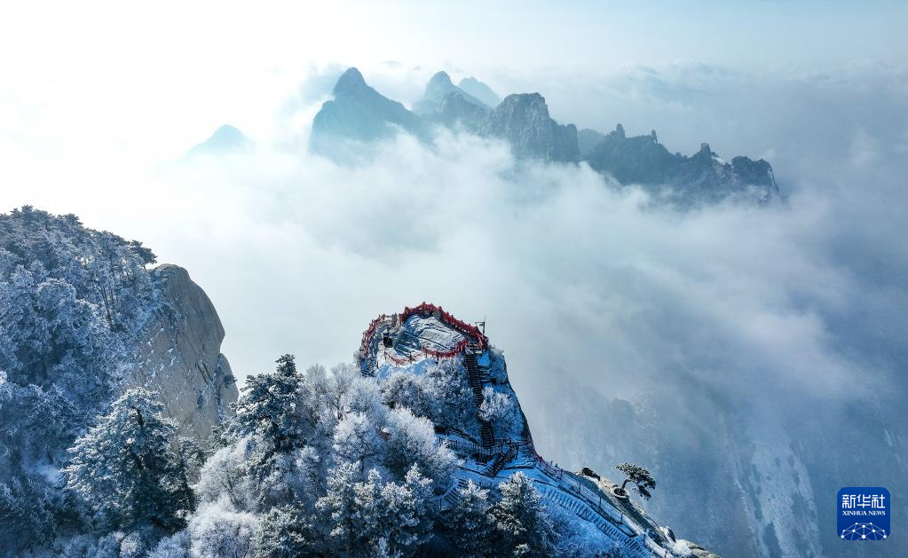 当日,雪后的西岳华山风景区云雾缭绕,犹如人间仙境。