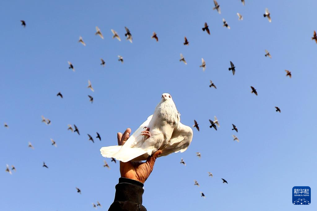 1月29日,在埃及开罗,一名养鸽人放飞他的鸽子。