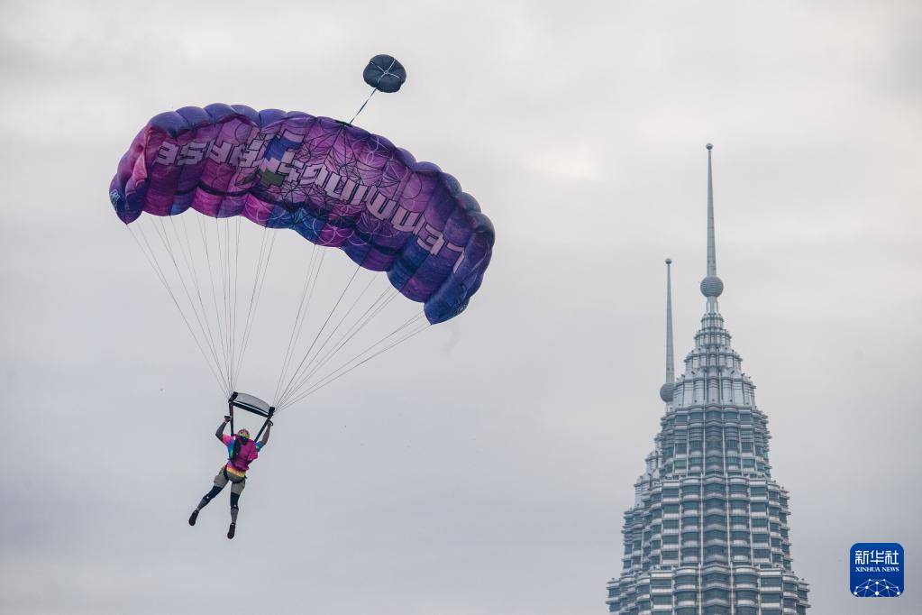 2023吉隆坡塔国际跳伞节于2月3日至5日在马来西亚吉隆坡举行,众多跳伞爱好者从吉隆坡塔上一跃而下。