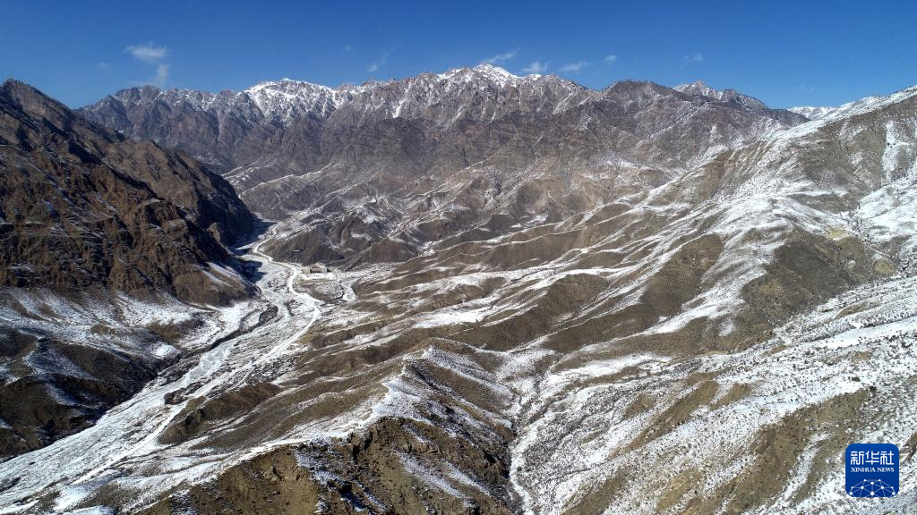 2月9日在宁夏贺兰山岩画景区拍摄的雪后贺兰山(无人机照片)。