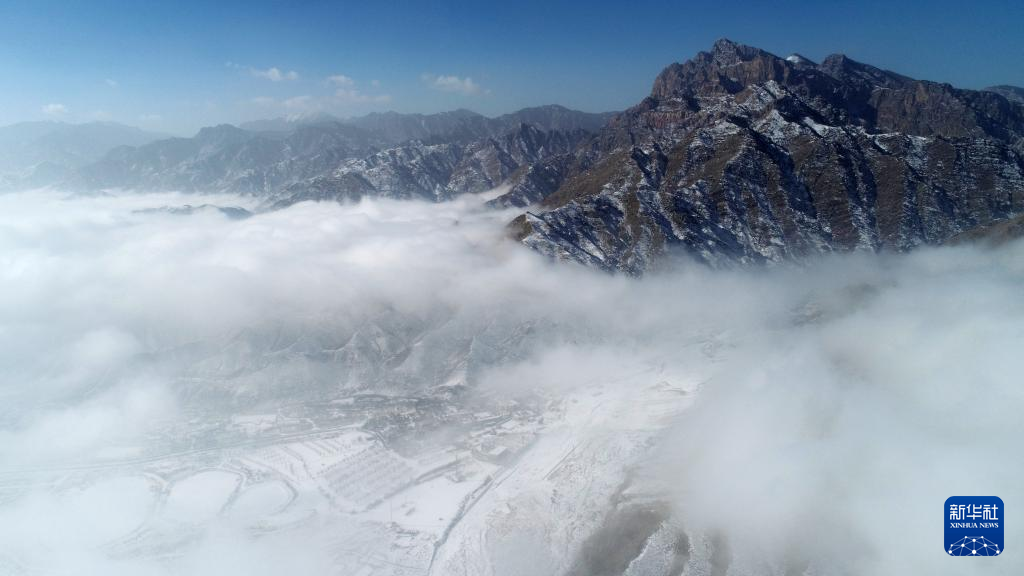 大雪过后,位于宁夏银川市的贺兰山云蒸雾绕,蔚为壮观,山峰之间云雾缭绕、冰凝雪积,美如仙境。