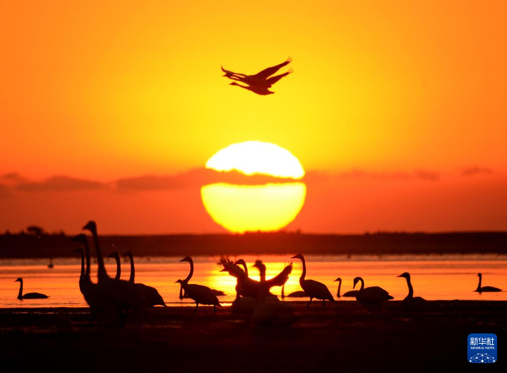 早晨,在山东荣成天鹅湖拍摄的大天鹅。新华社发(杨志礼 摄)