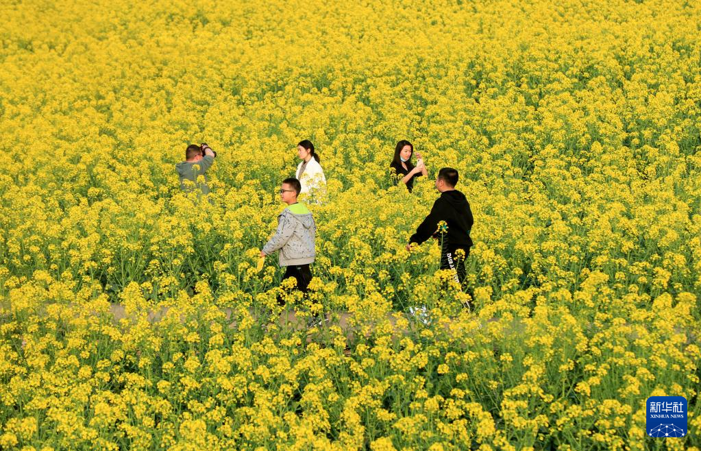 2月25日,游人在四川省泸州市泸县喻寺镇谭坝村油菜花海赏景游玩。