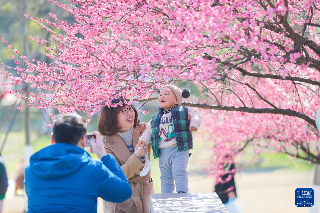 2月26日,人们在浙江省湖州市德清县春晖公园游玩赏花。