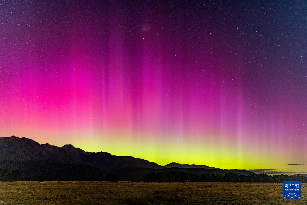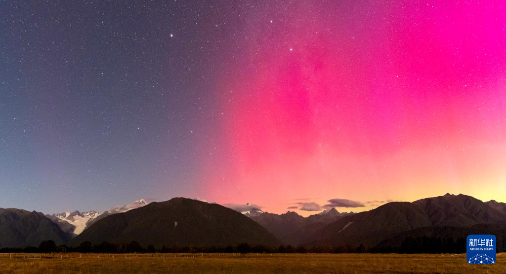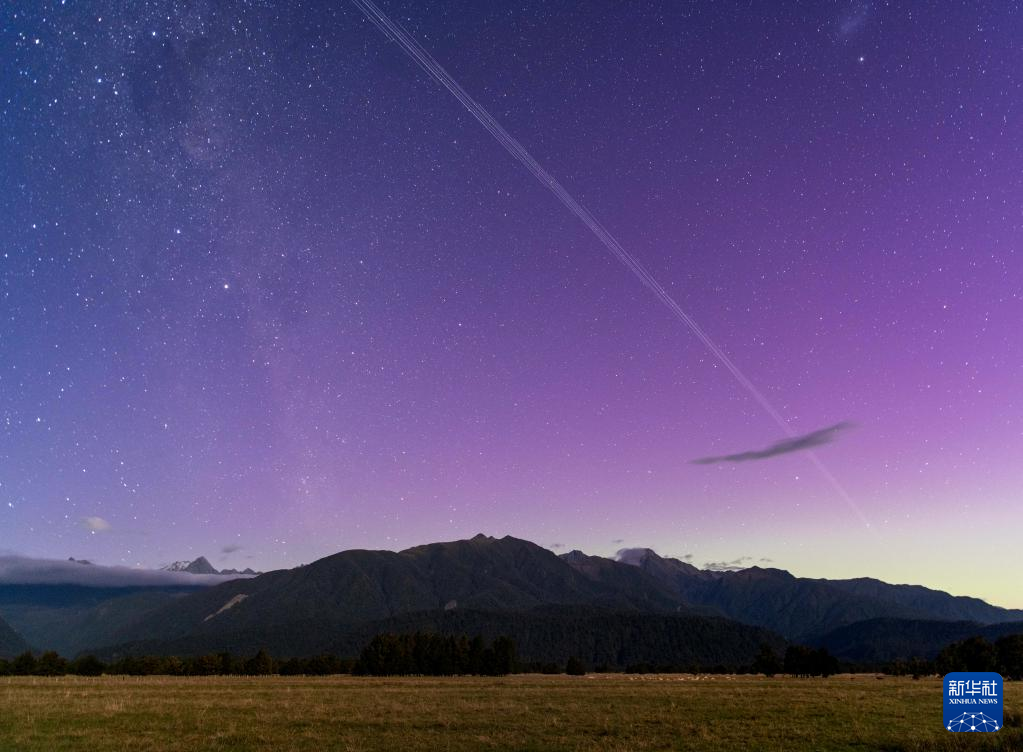 这是2月27日晚在新西兰南岛西海岸福克斯冰川拍摄的南极光。
