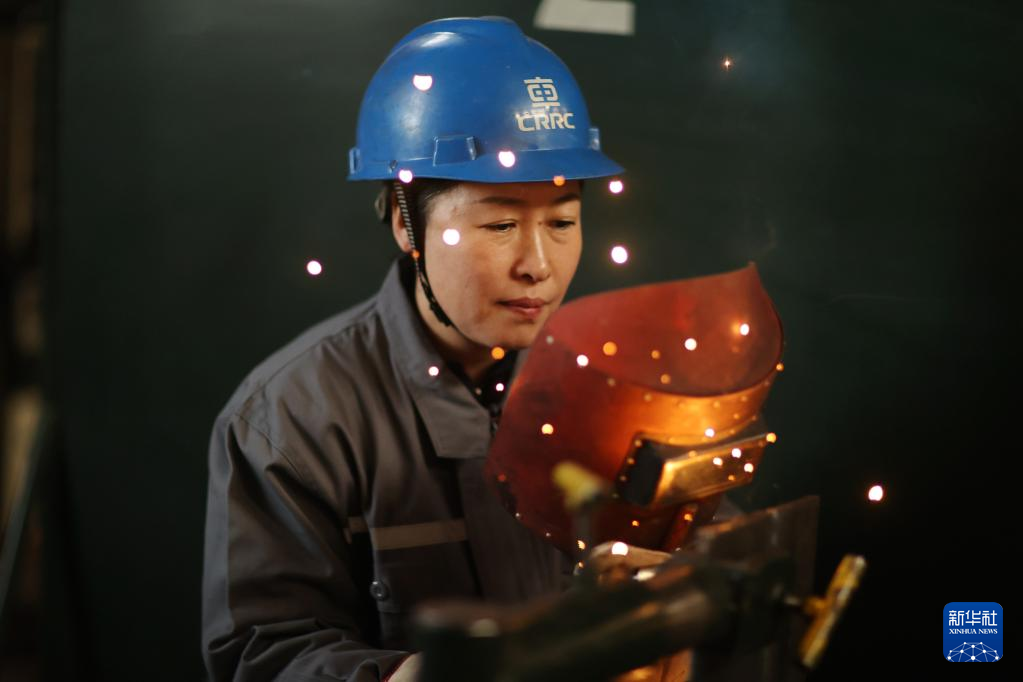 3月6日,中车齐车集团齐车公司电焊工张敬华在作业中。