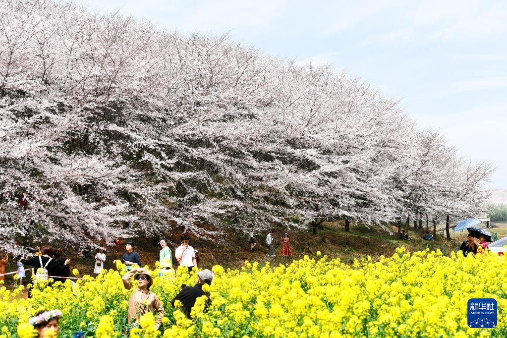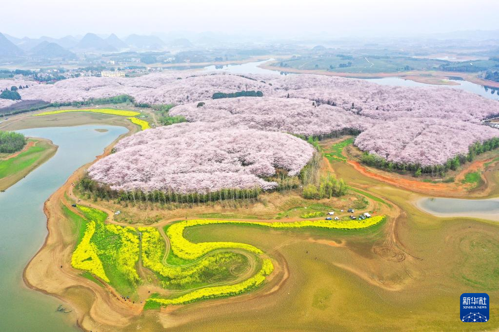 近日,贵州省贵安新区樱花园内的2.4万亩樱花竞相绽放,如雪似霞,吸引游客前来赏花观光。